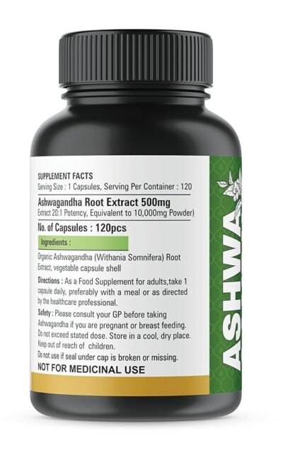 Organic Ashwagandha 1000 mg – 90 Vegan Capsules – Pure Organic Ashwagandha Powder and Root Extract Capsules – Stress Relief, Mood Enhancer