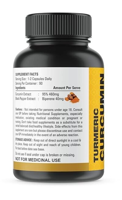 Turmeric Curcumin with BioPerine 95% Curcuminoids 500mg – Black Pepper for Max Absorption, Joint Support – Tumeric Supplement, Vegan Herbal Extract, Non-GMO, 90 Capsules