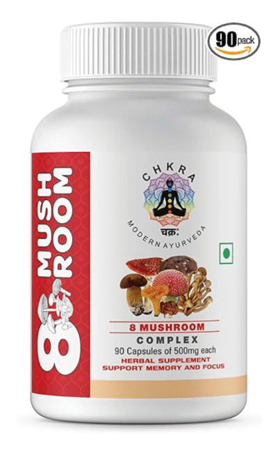 Mushroom Supplement 8 Mushroom Complex – 90 Capsules – Lions Mane, Turkey Tail, Cordyceps, Ganoderma(Reishi), Shitake, Maitake, Chaga, Oyster Mushroom Powder Extract- Immune Support, Brain Boost