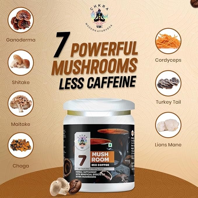- Complete 7 Mushroom Superfood Blend 🌿 Energize your day with Lion’s Mane, Chaga, Cordyceps, Reishi (Ganoderma), Shiitake, Maitake & Turkey Tail. Rich in antioxidants and beta-glucans, these adaptogenic mushrooms support focus, energy, and overall wellness.
